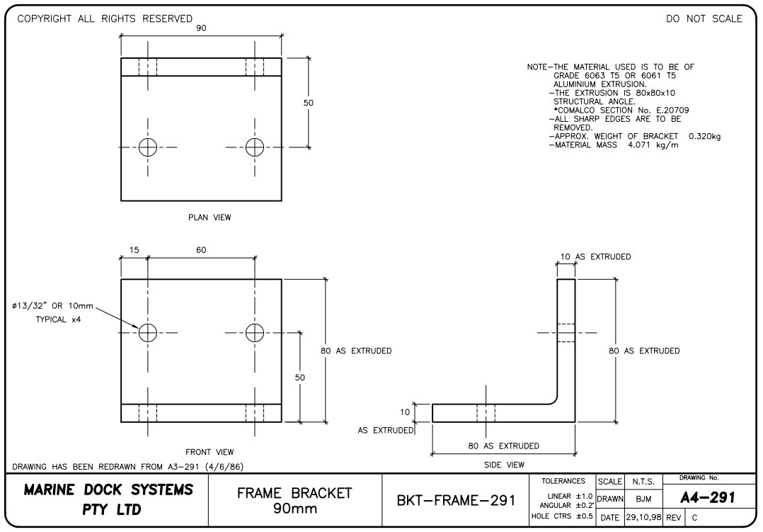 A4-2912 - 100mm Bracket detail suit timber frame