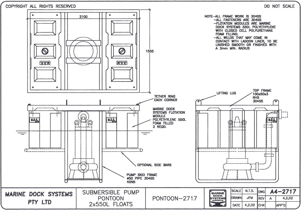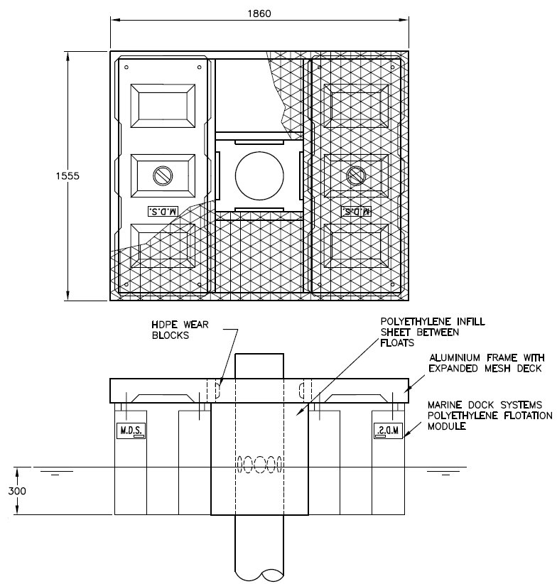 This float has been specifically designed for use under 'Sea Grass' pontoons and 'Effluent Treatment' pontoons.