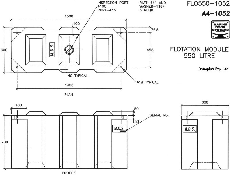 Large Detailed Drawings a4-1052 - 550 Litre float