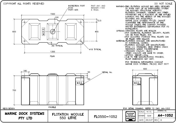 8 x 550 litre floats Dwg # 7047-02