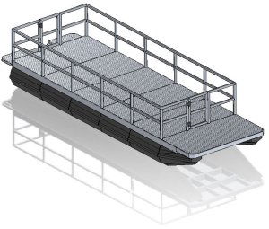 Pontoon modules are moulded in one piece from tough, high stress crack-resistant, thermoplastic polyethylene resin. In built mounting lugs allow direct connection of the modules to the frame work system.