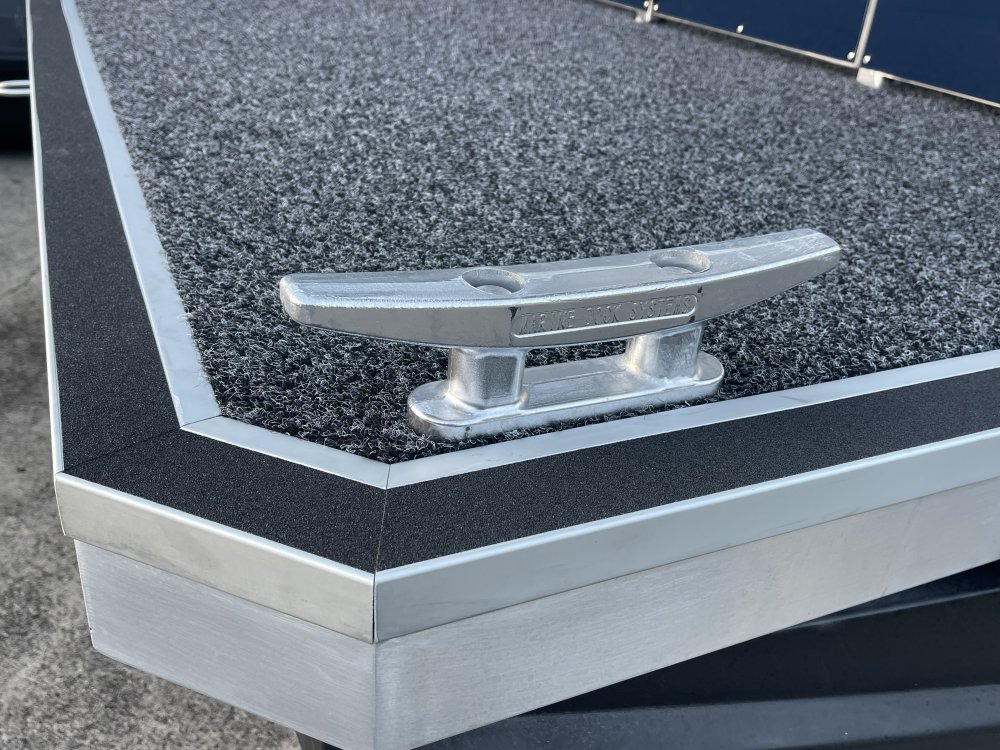 mooring cleats, habdrails with gates, hardtop roof, steering wheel console and furniture.