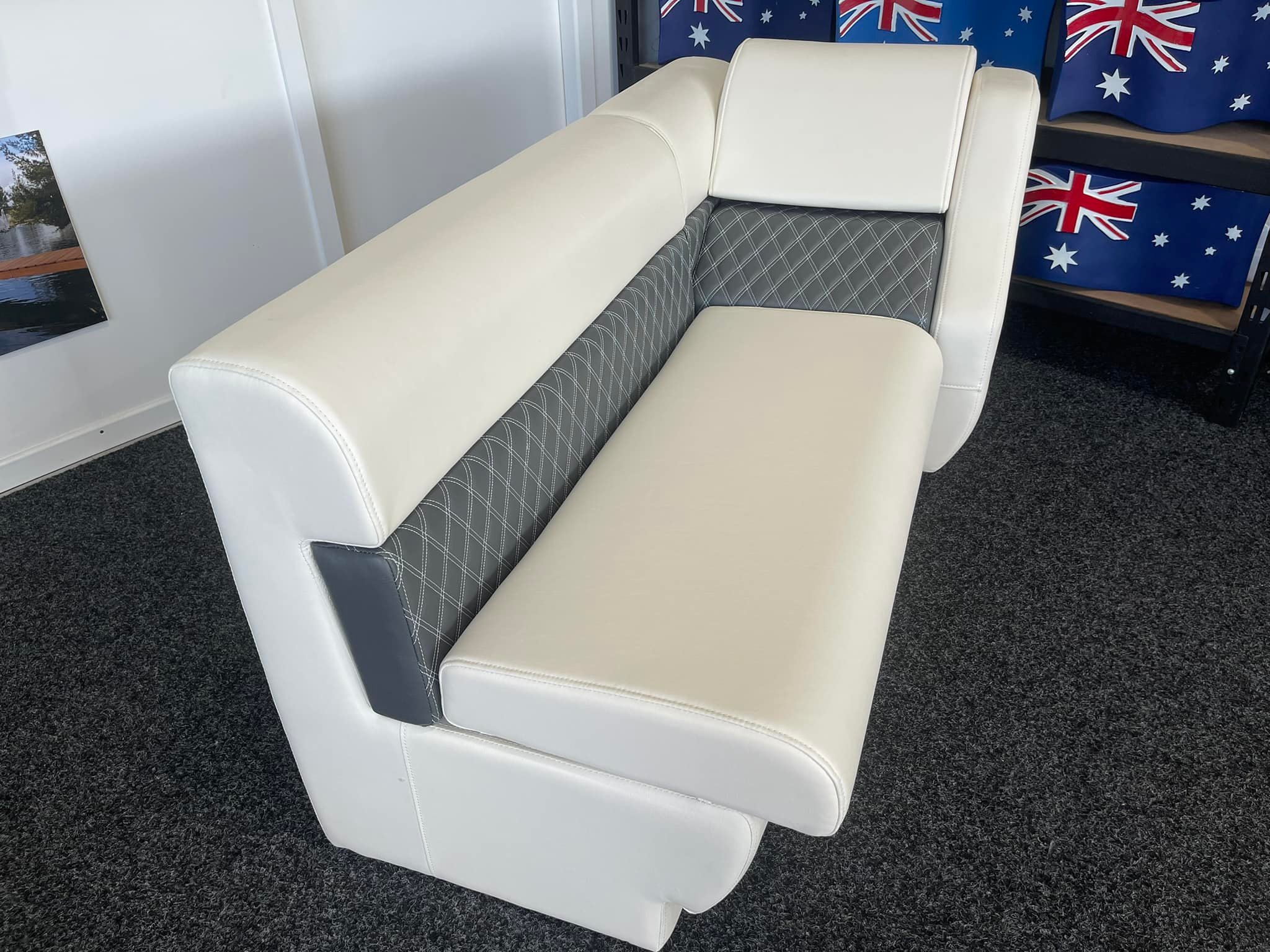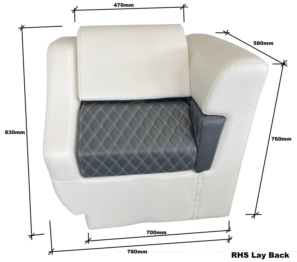 Roto moulded poly base with upholstered UV stabilized vinyl covering. Great for use in pontoon BBQ Party boats or caravans.