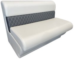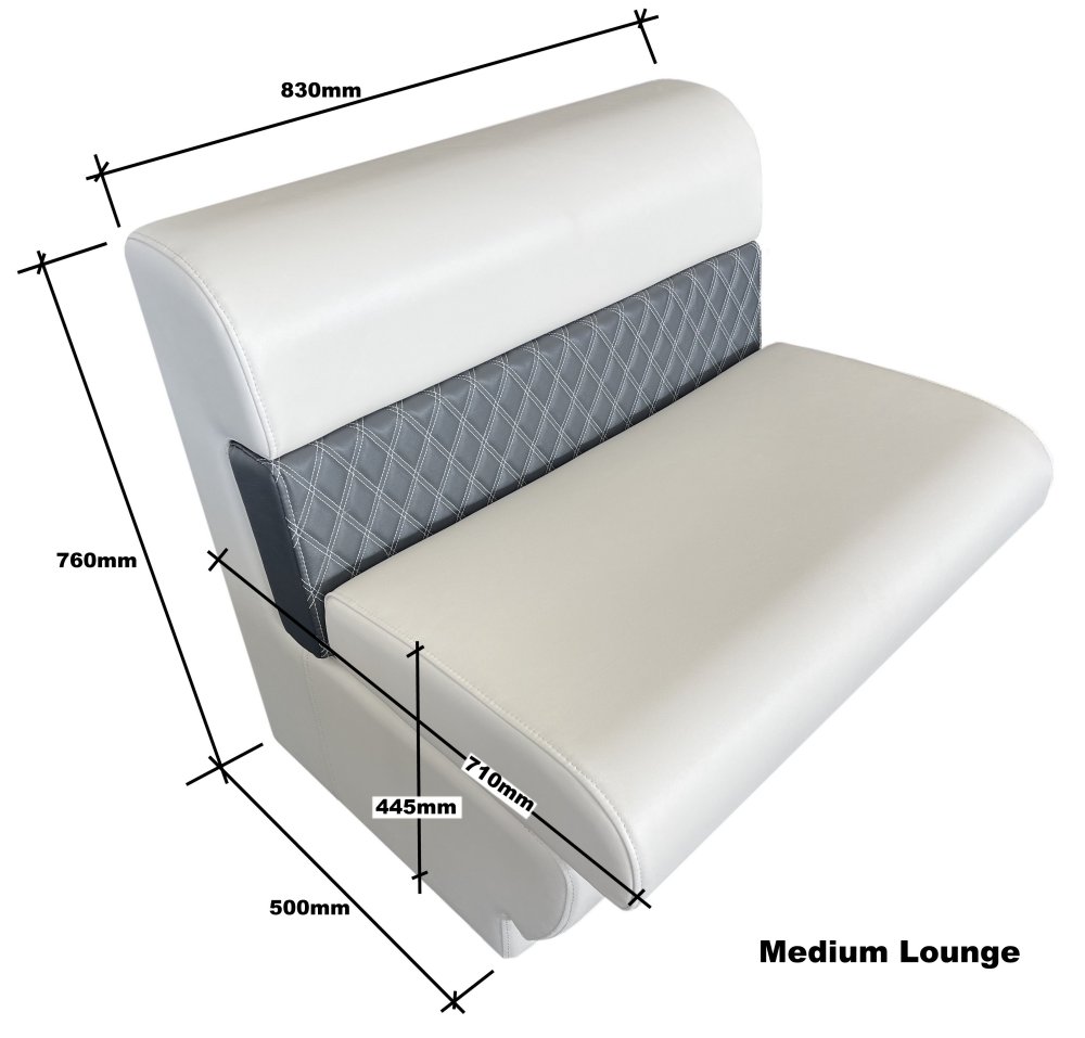Upholstered Medium pontoon lounge with lift up seat for storage. Roto moulded poly base with upholstered UV stabilized vinyl covering. Can be used in a row or match it in with other lounge section. Great for use in pontoon BBQ Party boats or caravans.